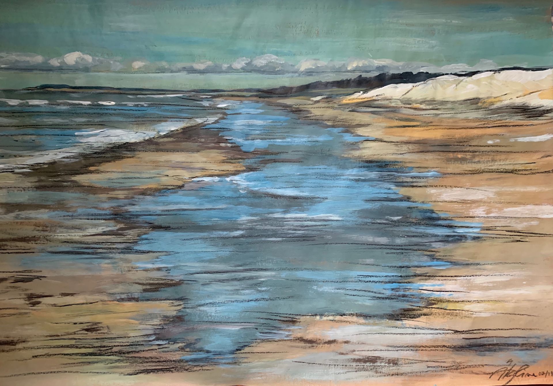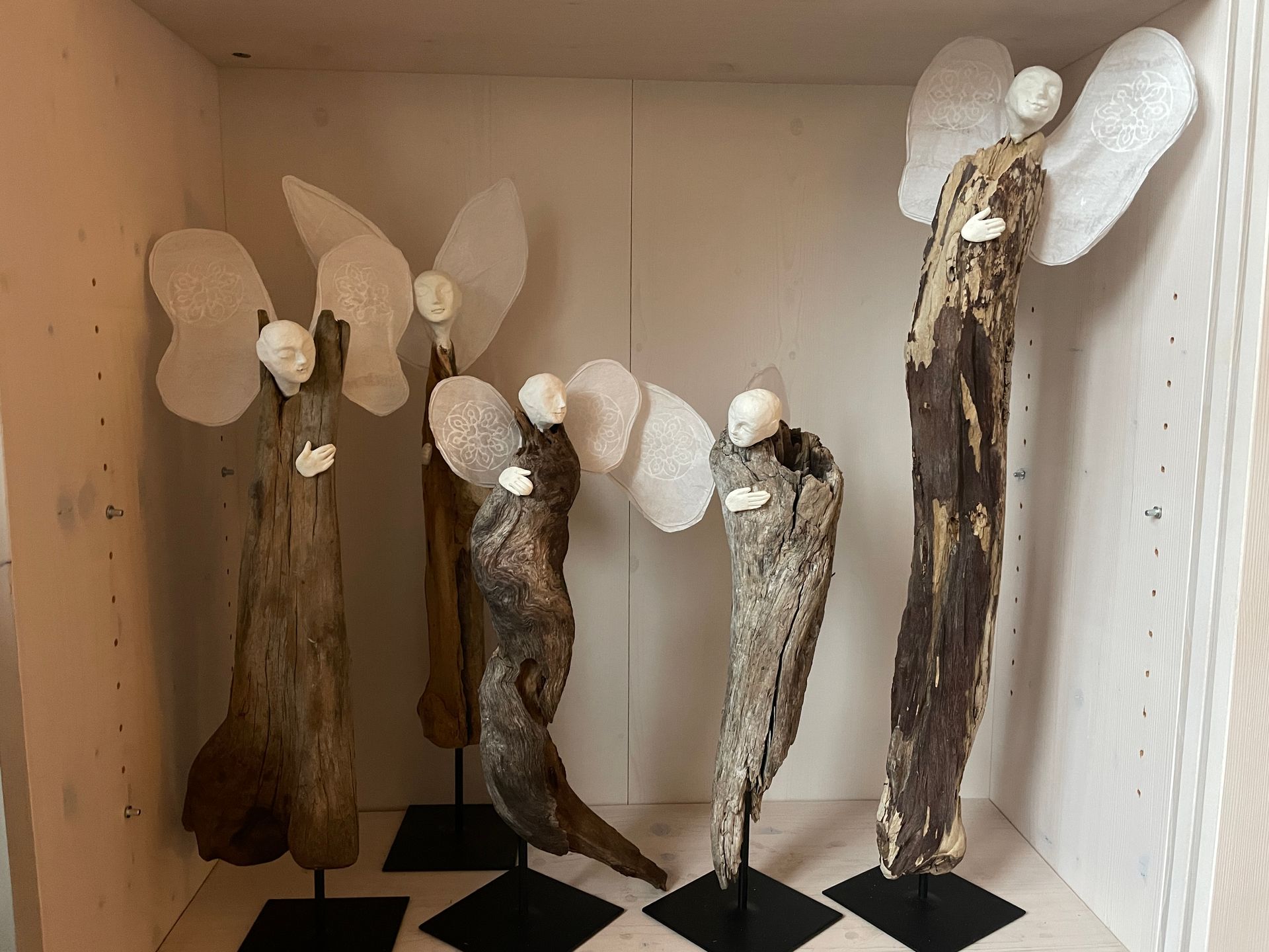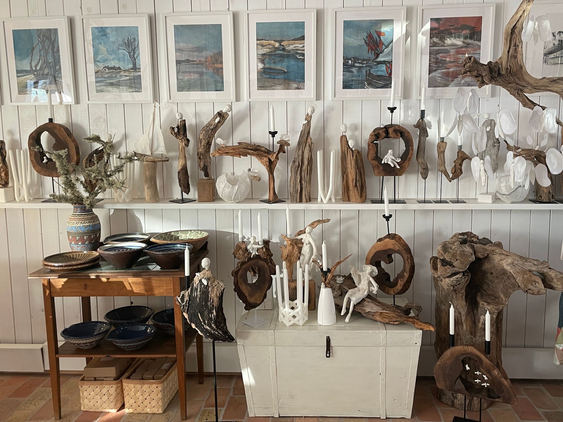 In einem lockeren Mix aus grafischen und malerischen Mitteln werden stimmungsvolle Momente festgehalten. Ihre Objektkunst und Skulpturen bleiben in Motiv und Material der Verbundenheit zu Natur und Meer treu.